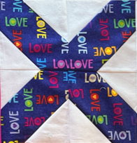 Repeat the process for the opposite corner and complete eight purple blocks in this way to create your X blocks.