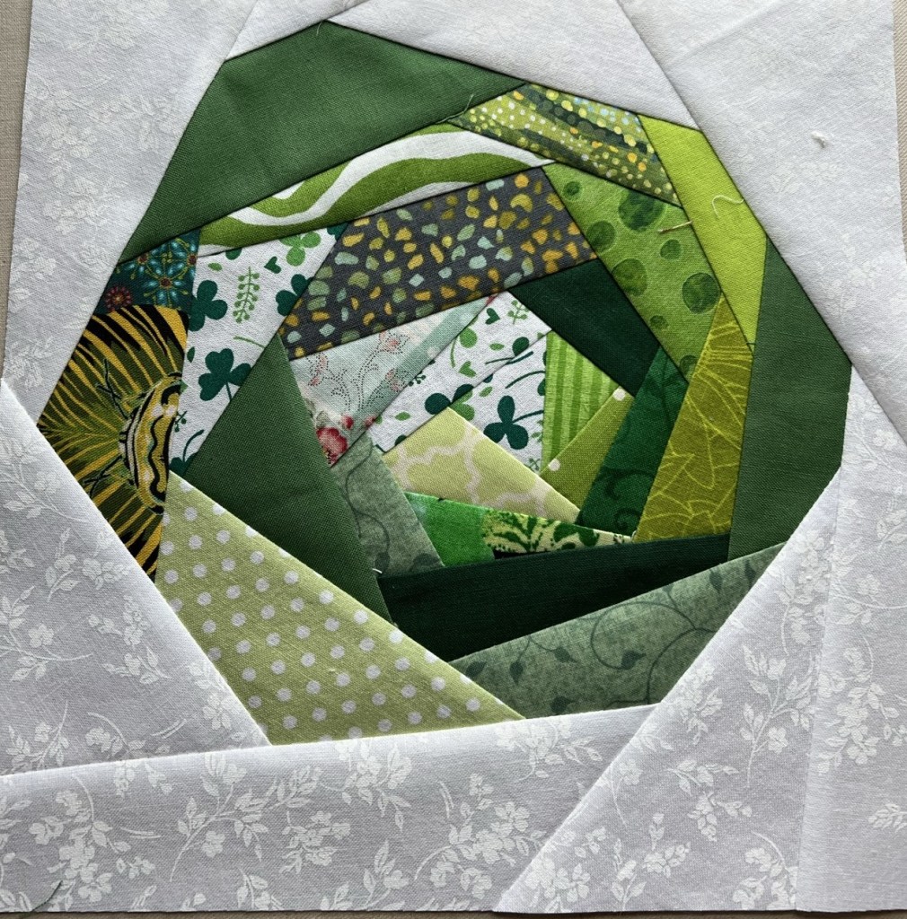Then I decided I would play with some free pieced flowers with the RSC each month. Not sure if I like it or not…we will see what comes of it. Added my sweet Gracie beside it just for fun!