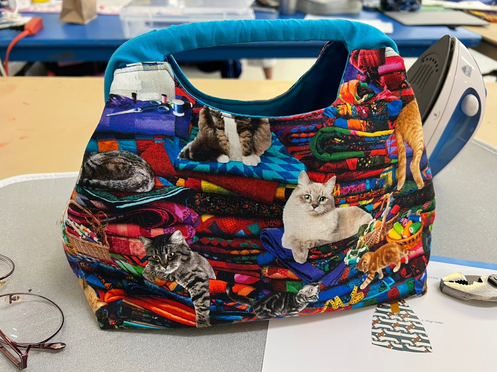 I took a class through my local quilt group yesterday to make this little bag for holding sewing supplies. It was not too difficult and came out really cute. I did a decent job, so I felt good. I usually struggle with bags.