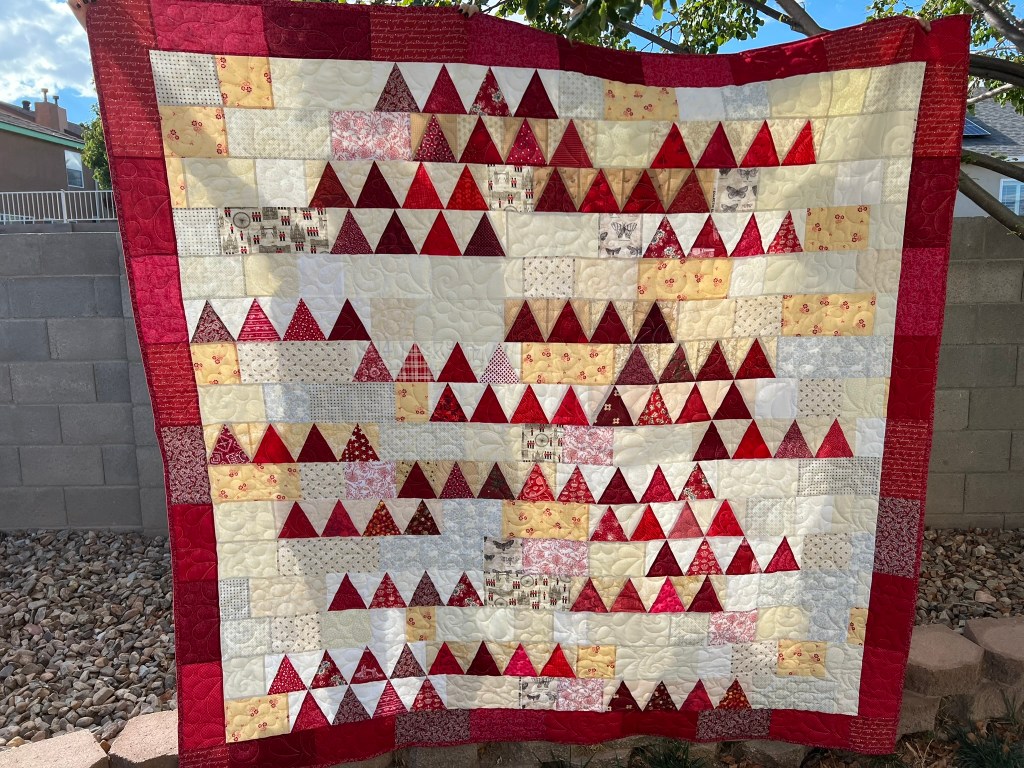 27 finishes this year- and that is counting all the little doll blankets as one finish. Lots of progress made on other projects as well! I guess I can’t complain with those results. My goal is always to finish 1 UFO per month. Many of these were new projects rather than UFOs but with more than the average of 2 finishes per month, I am quite happy. Looking forward to great results in the coming year and I may even manage another finish before 2026 is officially begun. A donation quilt is waiting to be loaded on the long arm right now. My Christmas Zipper block quilt is getting close to a flimsy finish as well.