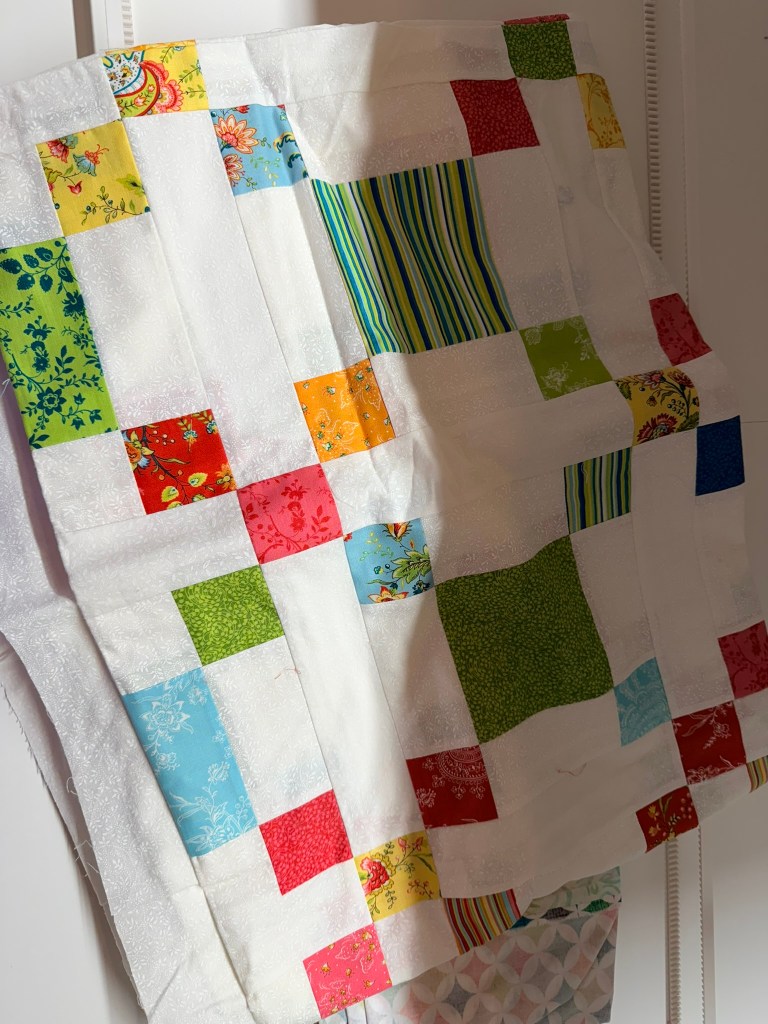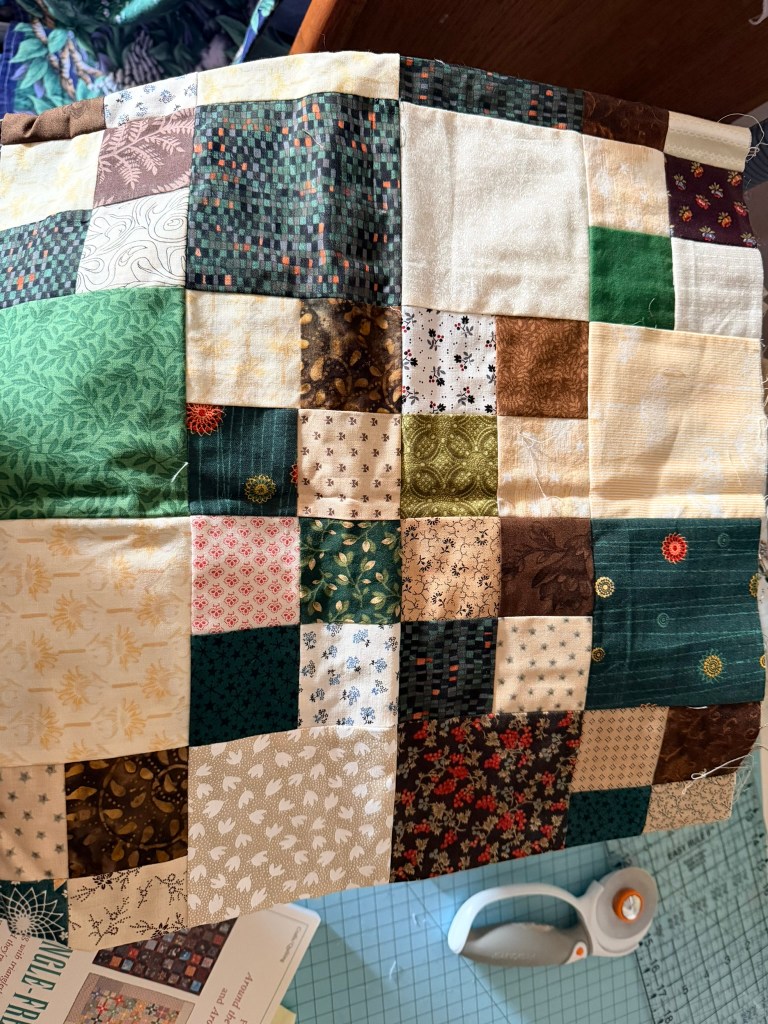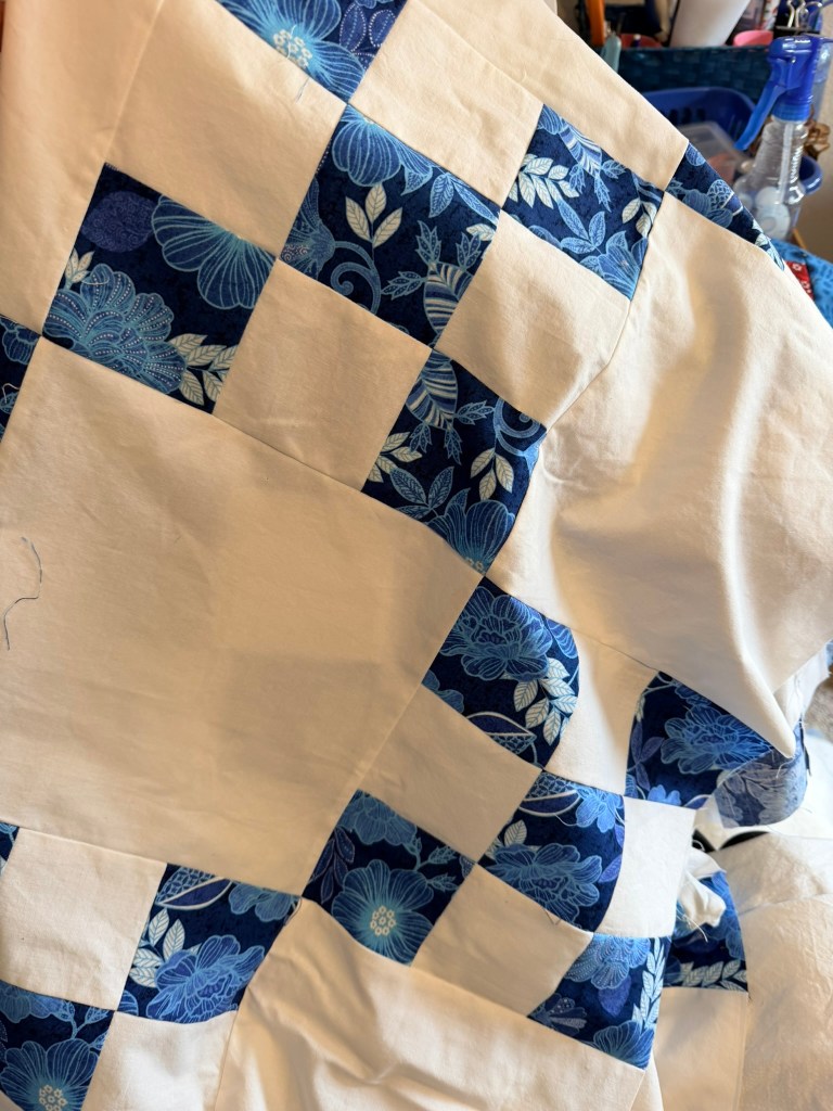 8. This double four patch is almost finished. A few more seams and then it can be quilted. Want it finished soon. It has been in the works forever!