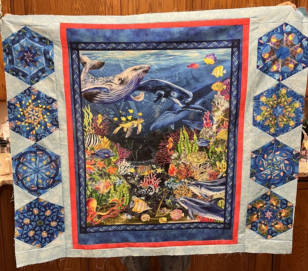 7. I have 4 or 5 little quilts that have been started to remember our multiple trips to Hawaii. I am putting them on the list as a group. I hope to make some progress on them. Having them on my wall would be so nice! I know there is a seahorse and one of flowers as well. Then I think I have a kit of another…
