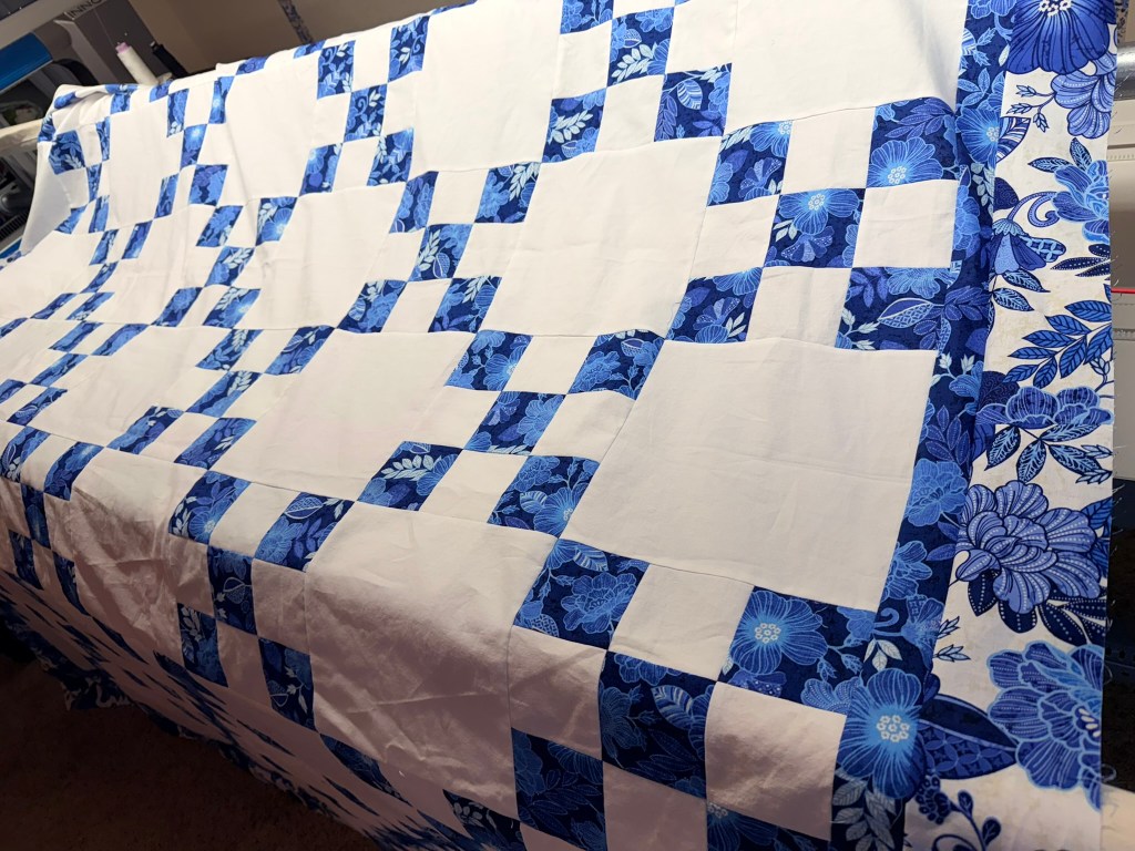 On today’s task list is getting this quilted! It is on the machine, and I started quilting it a couple of days ago. The machine got grumpy and I turned it off rather than deal with it. Back to it today so that I can get something else loaded for the weekend. I was hoping to get this one finished for a second completed quilt in January, but I doubt it will be bound in time for that. So, maybe the first finish of February.