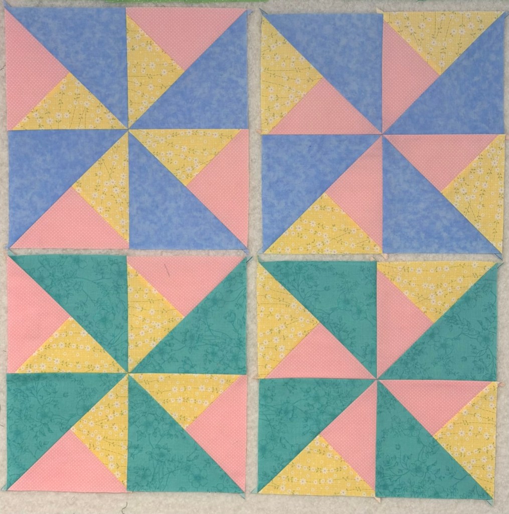 Pretty happy with these sweet blocks as well. They are for an April block donation, and I ended up making too many of the pink & yellow parts so had to make more than needed. I only need 2 blocks for the monthly donation but the other two will either be donated as extra or I will make them into little doll quilts which is another of our community service projects.