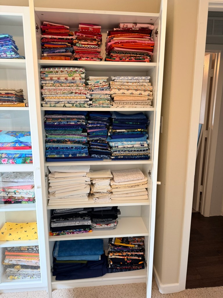 I am so excited to be able to see everything when I open those doors. It will help me know what I have and much easier to plan quilts from my stash.