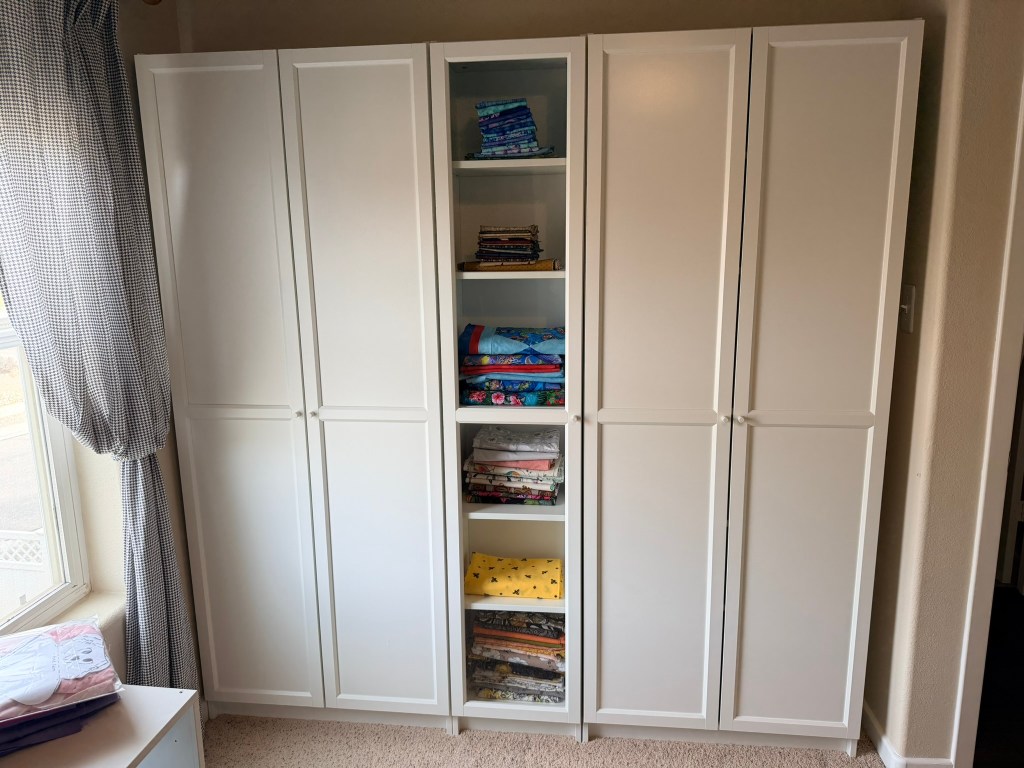 Our guest bedroom is also a fabric storage room. I had finally gotten tired of moving all the tubs to a different room any time guests were on their way, so… IKEA to the rescue! These cabinets fit perfectly into the room’s little niche, and they held way more than I thought they would! We love them so much that we will be ordering from IKEA to house my yarn collection that crowds my bedroom.