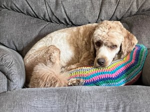 One of my fur babies, Cosmo. He is a sheepadoodle, 1 & 1/2 years old. My constant companion. Such a love- bug!